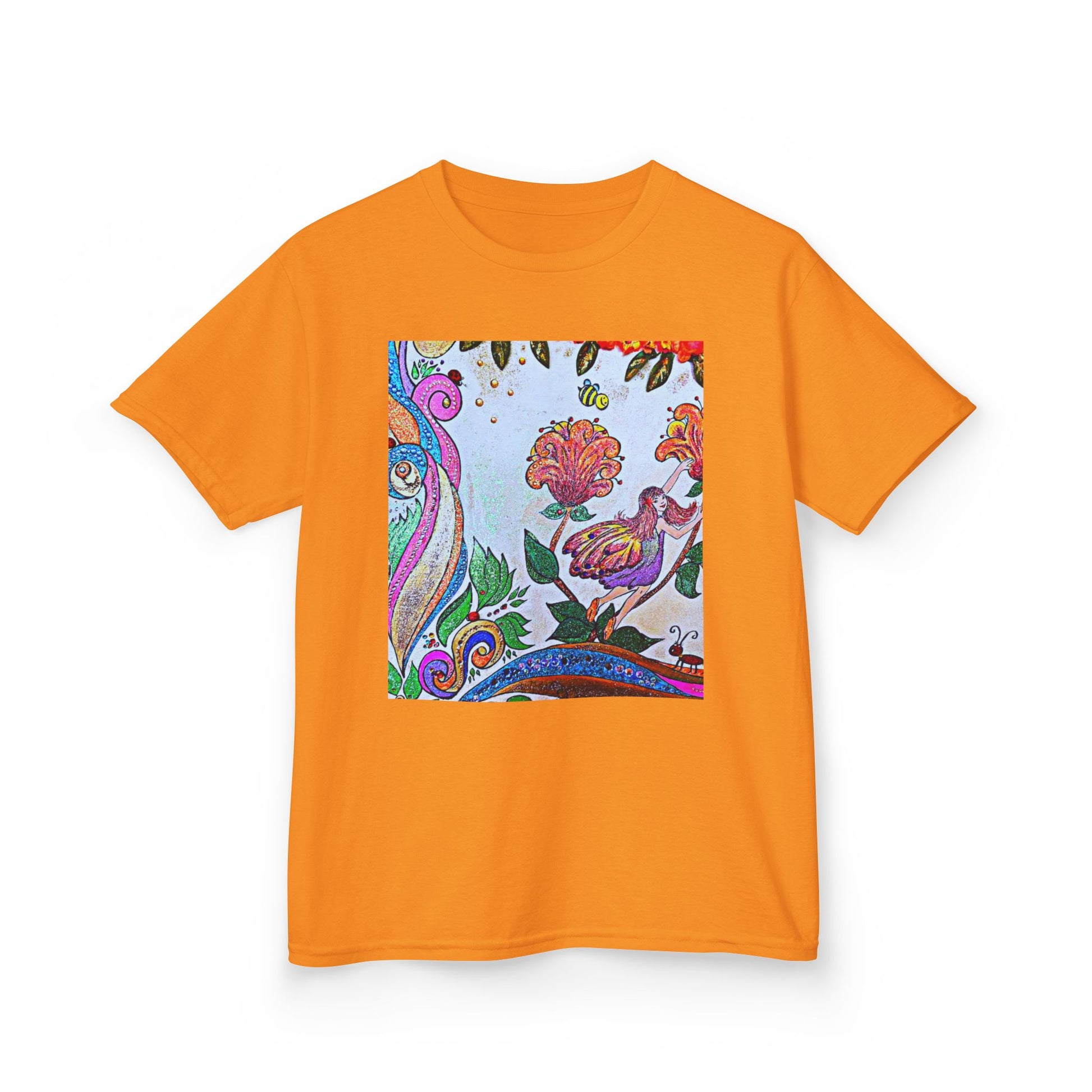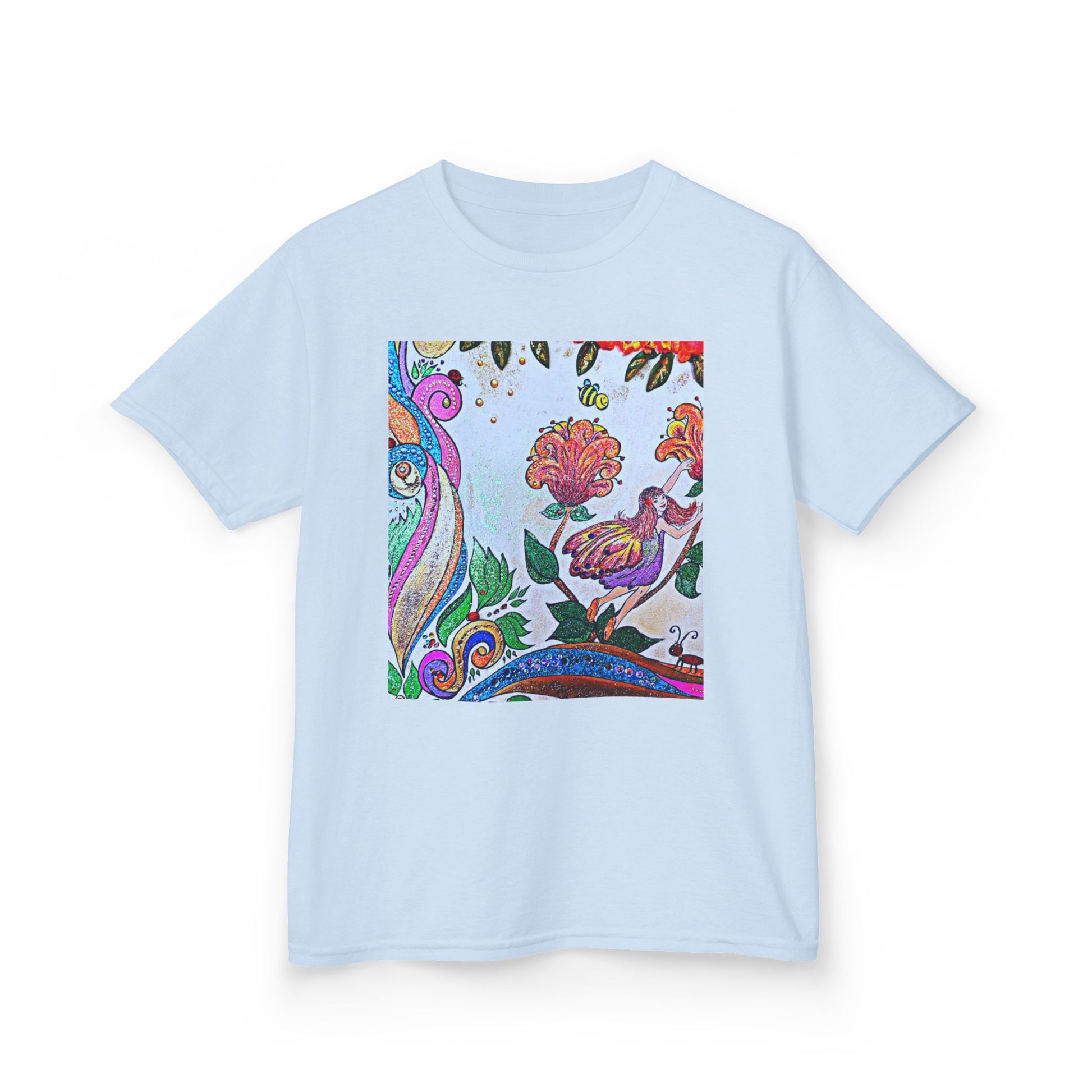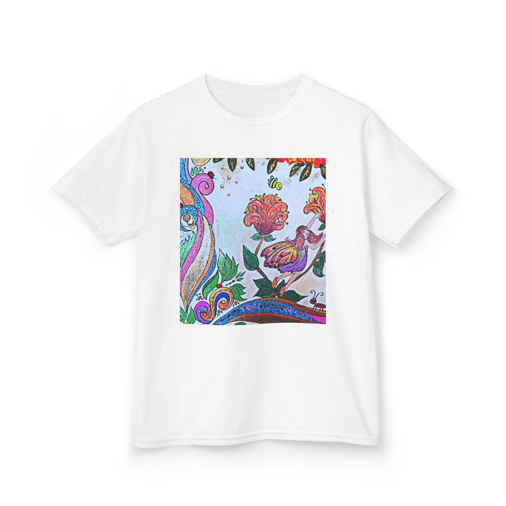 Bright, playful, and hand-drawn — this kids’ tee brings an artful splash of color to everyday play. The square print sits like a little window of imagination: swirling paisley lines, blooming flowers, and a curious bird tucked among leaves. Lightweight midweight cotton feels soft on little shoulders and holds its shape through rough-and-tumble days. It’s the kind of tee that starts conversations on the playground and becomes a favorite for backyard adventures, storytime, and family outings. Wash after wash the print keeps its lively colors, so the shirt keeps looking like new while your child fills it with memories.