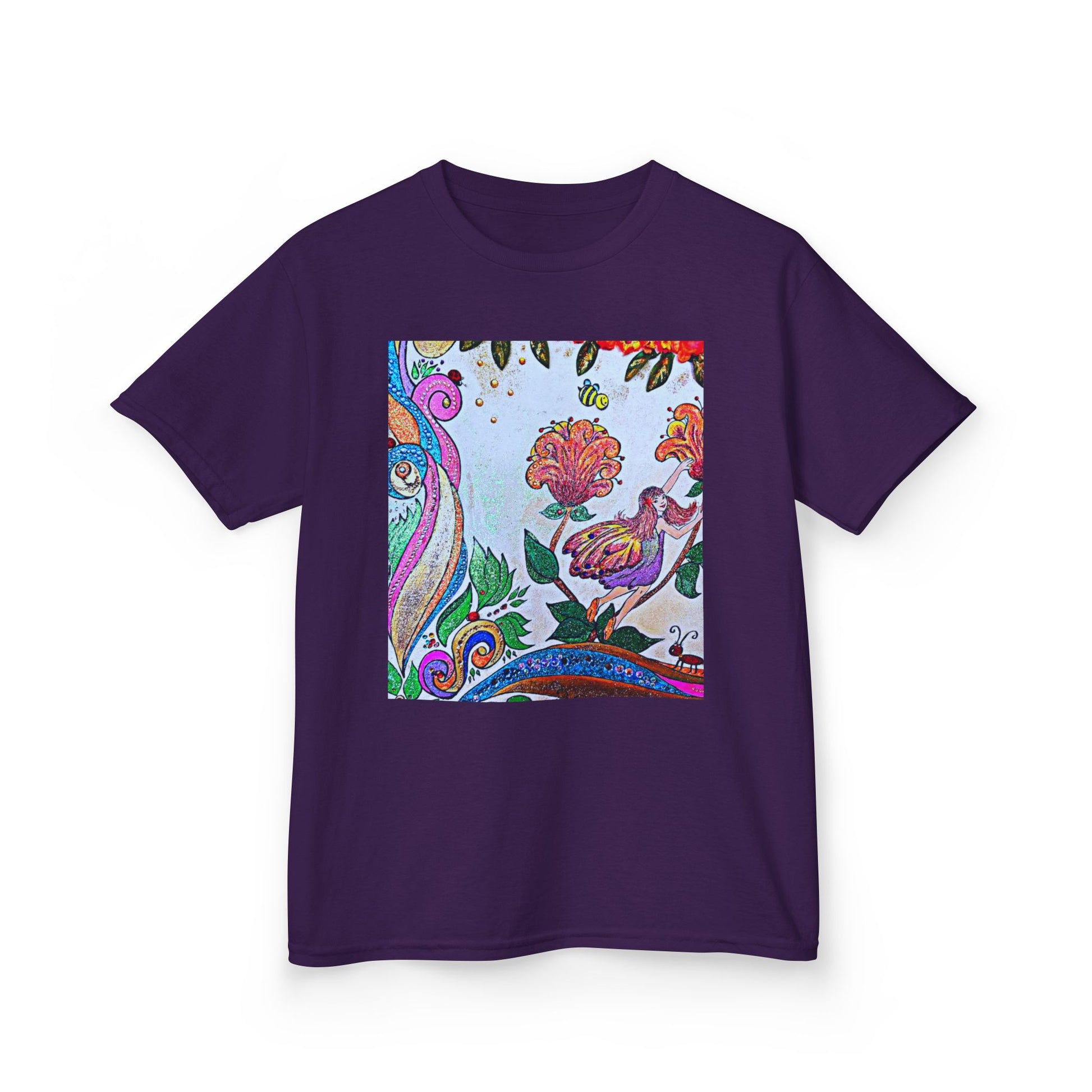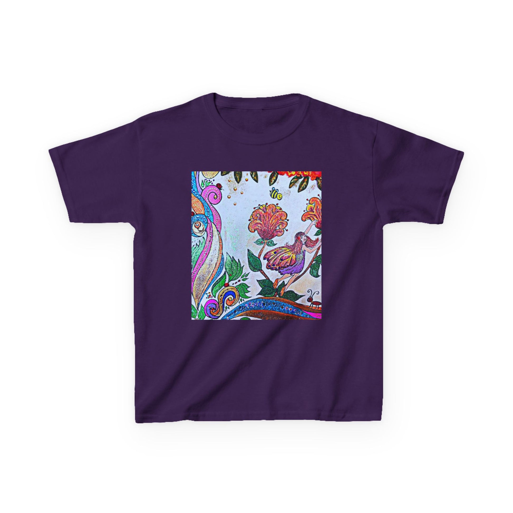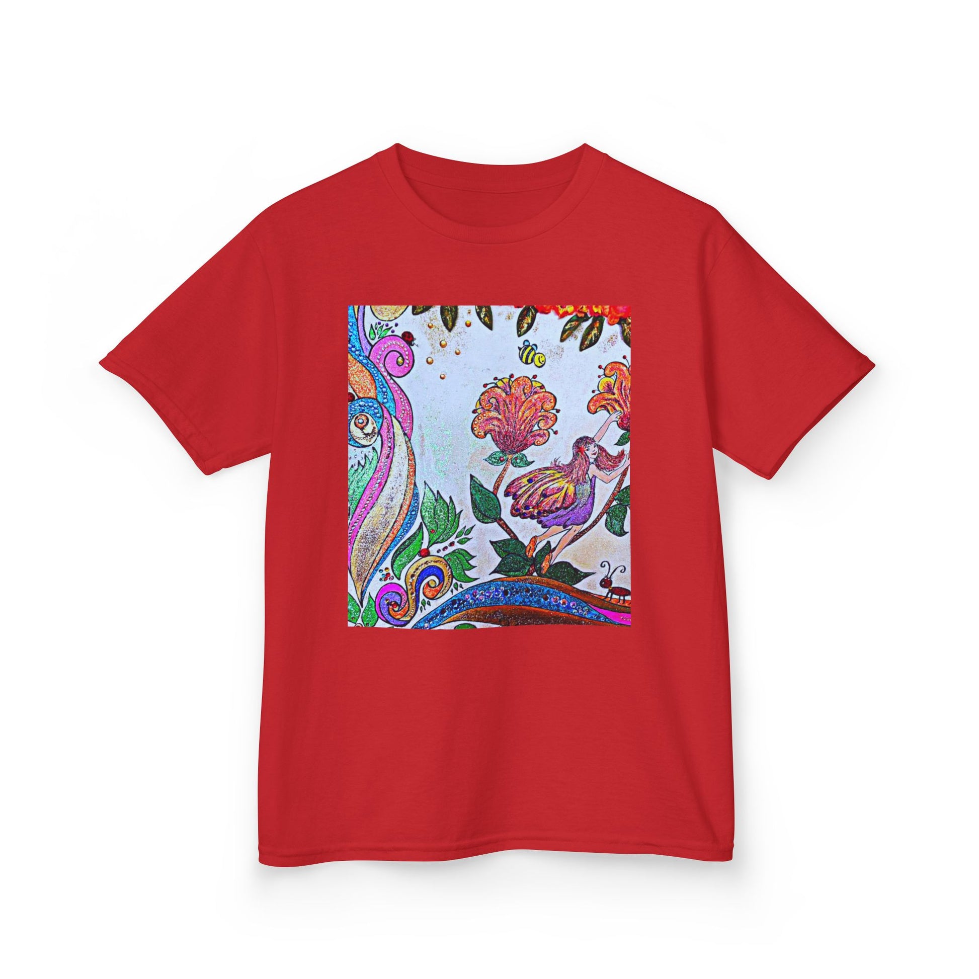 Bright, playful, and hand-drawn — this kids’ tee brings an artful splash of color to everyday play. The square print sits like a little window of imagination: swirling paisley lines, blooming flowers, and a curious bird tucked among leaves. Lightweight midweight cotton feels soft on little shoulders and holds its shape through rough-and-tumble days. It’s the kind of tee that starts conversations on the playground and becomes a favorite for backyard adventures, storytime, and family outings. Wash after wash the print keeps its lively colors, so the shirt keeps looking like new while your child fills it with memories.